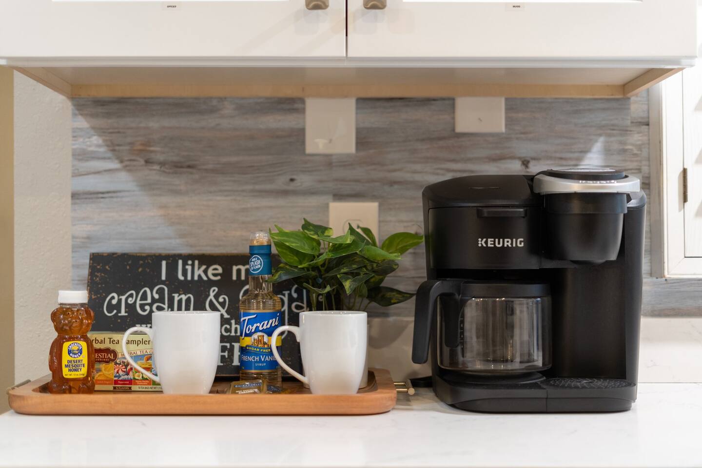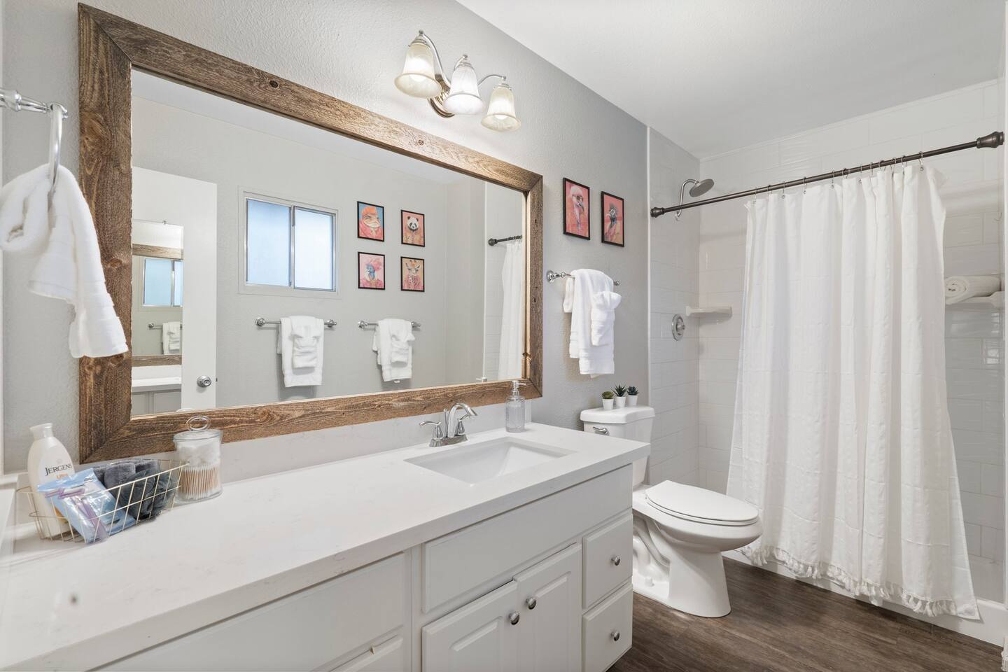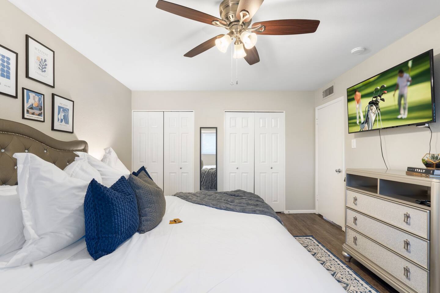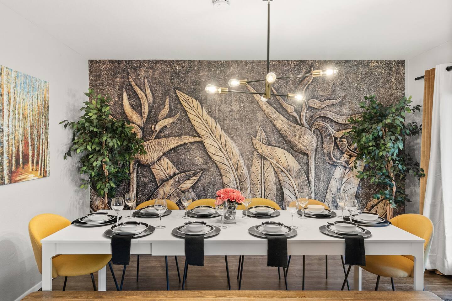 Whether you are taking that annual family vaca, going on a golf trip with your buddies or planning your besties bachelorette party, this 4 bedroom, 3.5 bath, tri-level Scottsdale home, complete with game room, outdoor dining area with built-in bar and grill, indoor and outdoor games, large heated pool & hot tub has something for everyone! Plus an experienced, local host who will ensure your trip to Scottsdale is memorable & stress-free! And only 3 miles to Old Town nightlife, bustling bars, hip restaurants, & world-class shopping, it’s the perfect location to enjoy all the fun & unique things for which Old Town is famous (while still enjoying peace & relaxation while your home!). If you are traveling with little ones, we got you covered! Available for our guests's use is a pack n play with sheets, a booster seat, toys, games and books so the little ones can stay entertained and you have less packing stress! All of the bedrooms have been furnished with brand new, memory foam mattresses, exquisite linens and soft cozy blankets to ensure you get your best night's sleep! The master bedroom en-suite, situated upstairs, is outfitted with a king size bed, dresser and extra large, wall-to-wall closet with multiple height bars and shelves, perfect for storing all of your personal belongings. The attached private bathroom has a standing shower & is stocked with all of the essentials like fresh, clean towels, makeup cloths, shampoo, conditioner, body wash, hairdryer & more. The second bedroom has a peaceful aesthetic in shades of green and cream and features a framed gallery of modern art prints over 2 queen sized beds. There is a large dresser and full length closet with double doors, perfect for storing all of your belongings. The 3rd upstairs bedroom, the "glam room," also has 2 queen beds, closet and dresser for storage. All of the bedrooms have ceiling fans and full-length mirrors. The large upstairs guest bathroom has a bathtub and shower combo and double sink vanity. Also stocked with all of the essentials like fresh, clean towels, makeup cloths, shampoo, conditioner, body wash, hairdryer & other toiletries, you will have everything you need here so you can pack light! The main level features a large, open floor plan with a living room, dining room, kitchen, laundry room and half bathroom. The living room has an extra long L-shaped couch with enough seating room for everyone! The large, wall-mounted smart TV will allow you to stream all of your favorite programs, sports events or music and the fireplace is perfect to cozy up next to with a book during the chilly Arizona winter nights. The newly remodeled, spacious and fully-loaded kitchen has ample counter space for preparing and serving meals, new stainless steel appliances, spices and cooking oil, a coffee and tea nook and a long breakfast bar with stools which are perfect for a quick breakfast or for a serving area. The dining room, directly adjacent to the kitchen, seats 10-12 people so your entire group can dine together. The laundry room features a full-sized washer and dryer complete with laundry essentials like detergent, fabric softener and dryer sheets. Open up the double glass patio doors in the dining room for direct access to the large, covered patio. The backyard space opens up to the dining area which features a table for 6, wall-mounted, smart TV, a large bar with built-in drink cooler to keep all of your beverages ice cold, & plenty of bar stools and counter space for the entire group! The built in gas grill is directly adjacent to the dining space making serving your favorite BBQ meals a breeze (a small charcoal grill is also available). Outdoor games will keep everyone entertained and the pool-side loungers and sun umbrellas will allow you to enjoy as little or as much sun as you like. In the evening, toast some smores (or just get yourself toasty!) next to the outdoor firepit or take a relaxing soak in the large hot tub! The downstairs level of the home features a large game room with wall-mounted smart TV, pool table, lots of board games, wet bar, plenty of seating and a super cool grass wall with a neon "good vibes only” sign...the perfect back-drop for all your vacay photos! Get ready for a night out in Old Town in the makeup room because you’re like, really pretty! With room for 8, each prepping station is complete with a pink velvet stool, lighted tri-fold mirror and a heat resistant pad for all your hot tools. The downstairs bedroom features a twin bunk bed and full-sized bed, large closet and small dresser for storage, full-sized mirror and ceiling fan. The dedicated workspace is located in the downstairs bedroom and is complete with a writing desk, chair and printer to tackle all of your "work from home” tasks. There is a full bathroom downstairs with a bathtub and shower combo and all of the essentials like fresh, clean towels, makeup cloths, shampoo, conditioner, body wash, hairdryer & more. **Pool heating is available. There is a $50/day charge to heat the pool to a max of 85 degrees** This property is equipped with a Minut which measures the decibel levels in our home. The city of Scottsdale limits the number of occupants at a vacation rental to 6 adults plus their related dependent children. TPT licnese #:21479274 City of Scottsdale permit #:2023558
